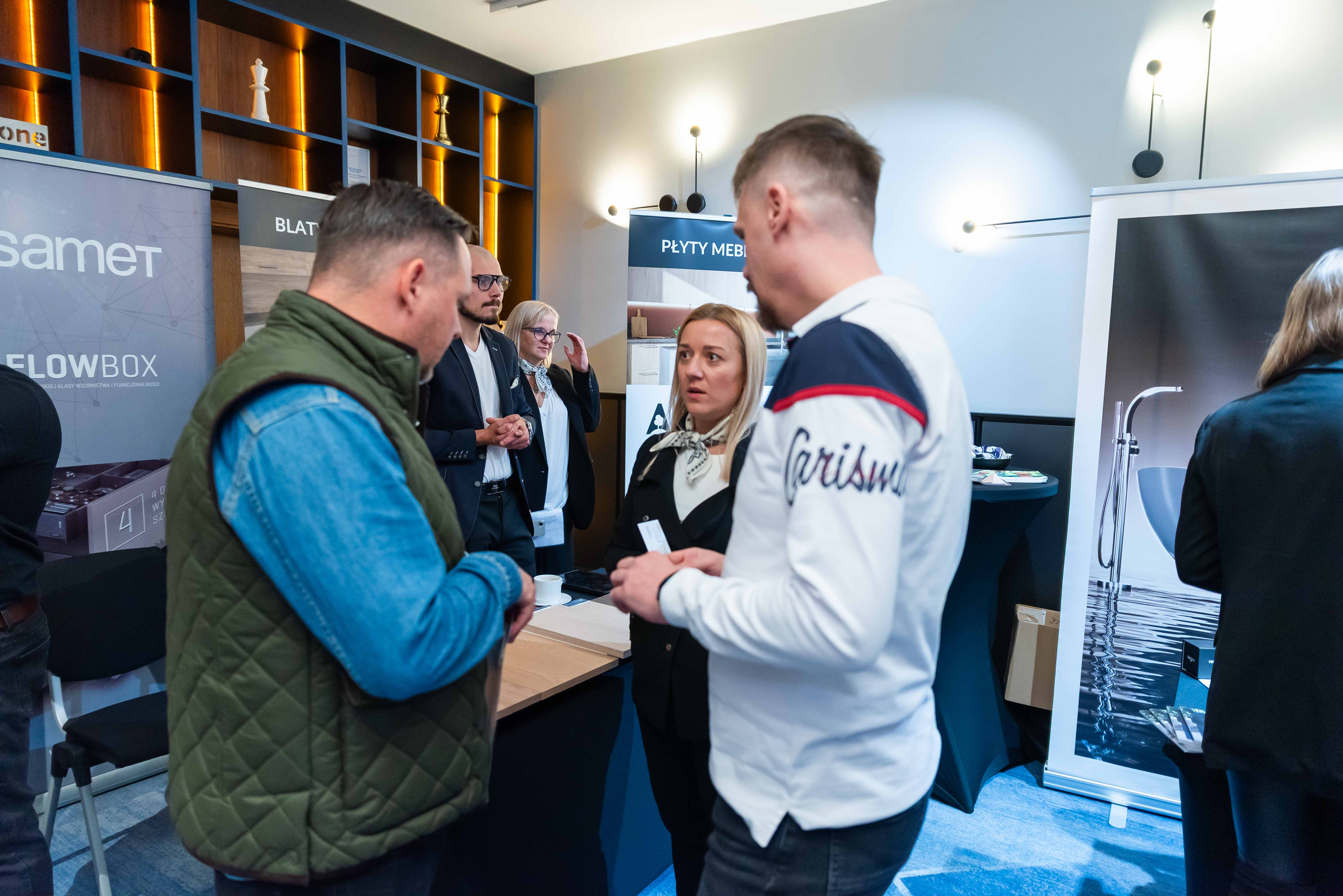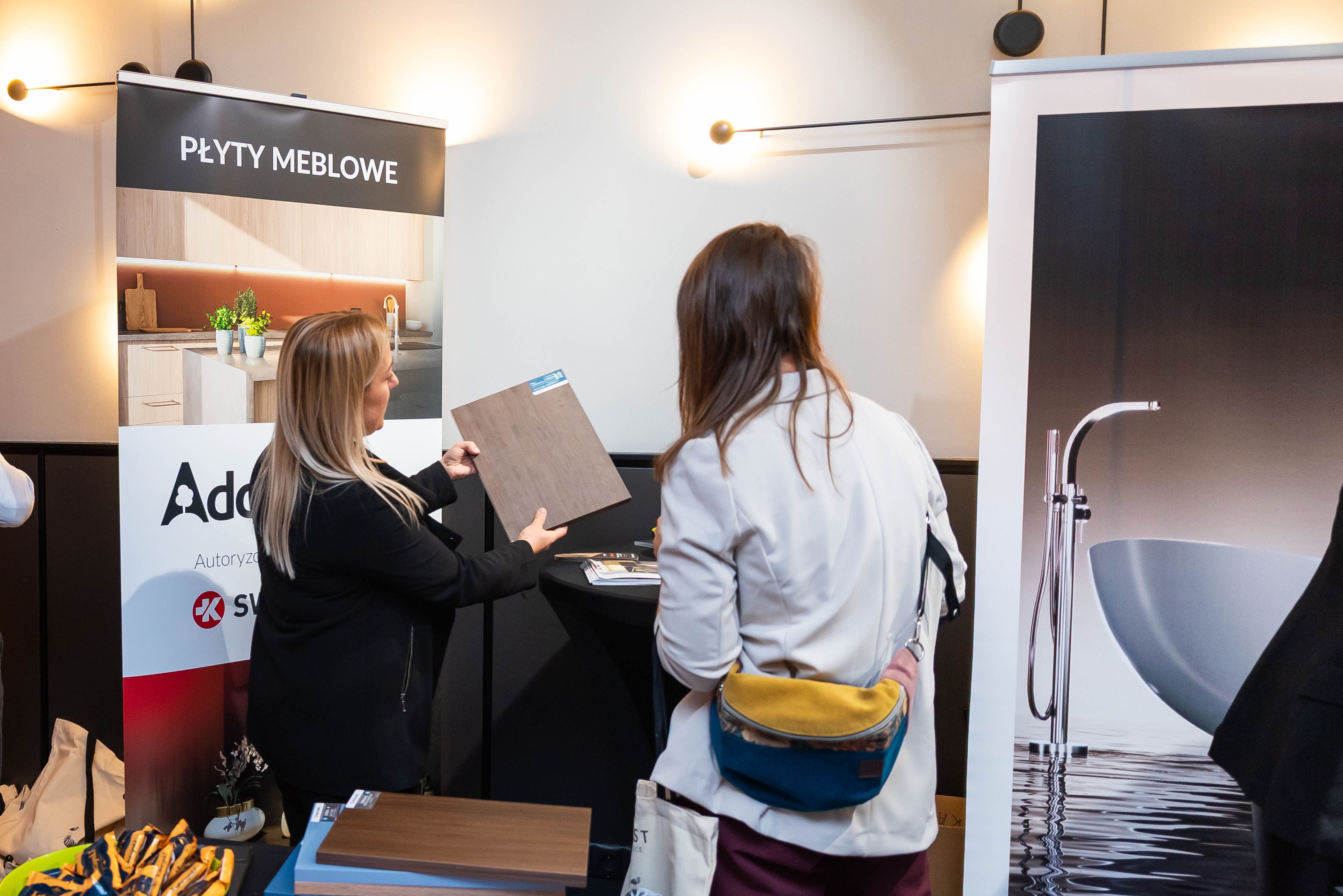 Podczas spotkania mieliśmy przyjemność zaprezentować ofertę marki SWISS KRONO, której jesteśmy autoryzowanym przedstawicielem. Pokazaliśmy najnowsze dekory, kolekcje i rozwiązania dedykowane nowoczesnym oraz funkcjonalnym wnętrzom, które cieszyły się dużym zainteresowaniem wśród odwiedzających stoisko projektantów.